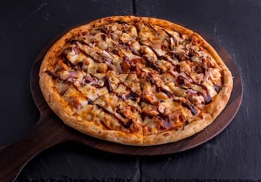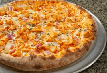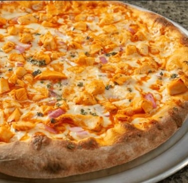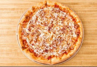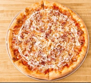 Pre: Classic marinara base, mozzarella, chicken and bacon.