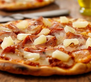 Pre: Classic marinara, mozzarella with meatball and pineapple.