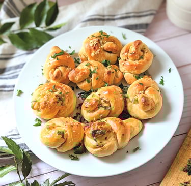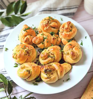 Hand-tied dough baked with house garlic butter and finished with parmesan cheese, Italian herbs, and garlic oil